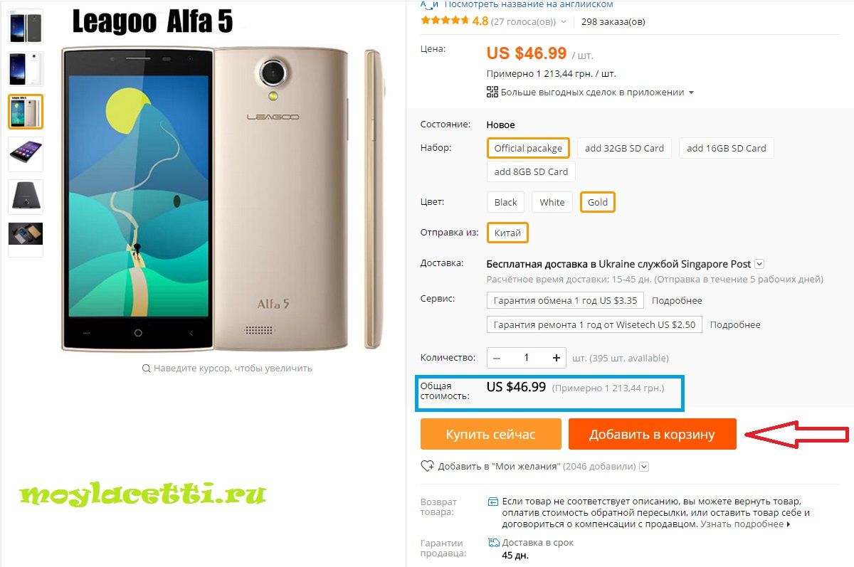 В данном примере мы будем покупать бюджетный смартфон за очень бюджетную цену.