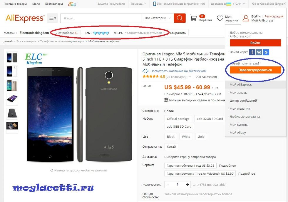 Как выбирать товар, рассказывать, я думаю, не нужно. Единственное, что отмечу — это выбор продавца. Я буду покупать смартфон вот у этого, который ниже на скриншоте. Я обвёл красным цветом данные о продавце, которые довольно не плохие. Поэтому я выбрал именно его.