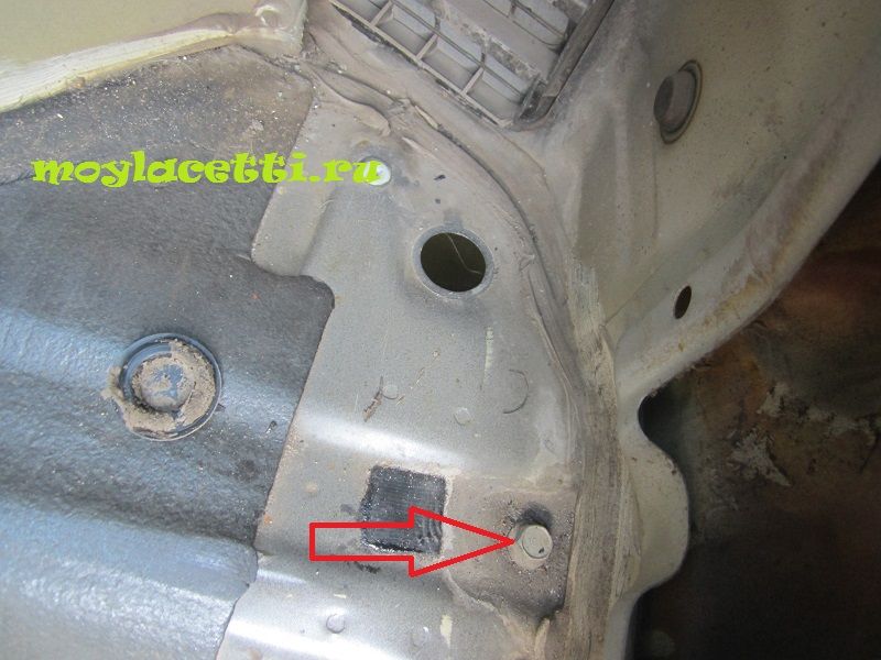 Нишу запасного колеса также стоит хорошо обработать. Куда вкручивается фиксатор запасного колеса я, вообще, залил мовилью полностью со шприца.