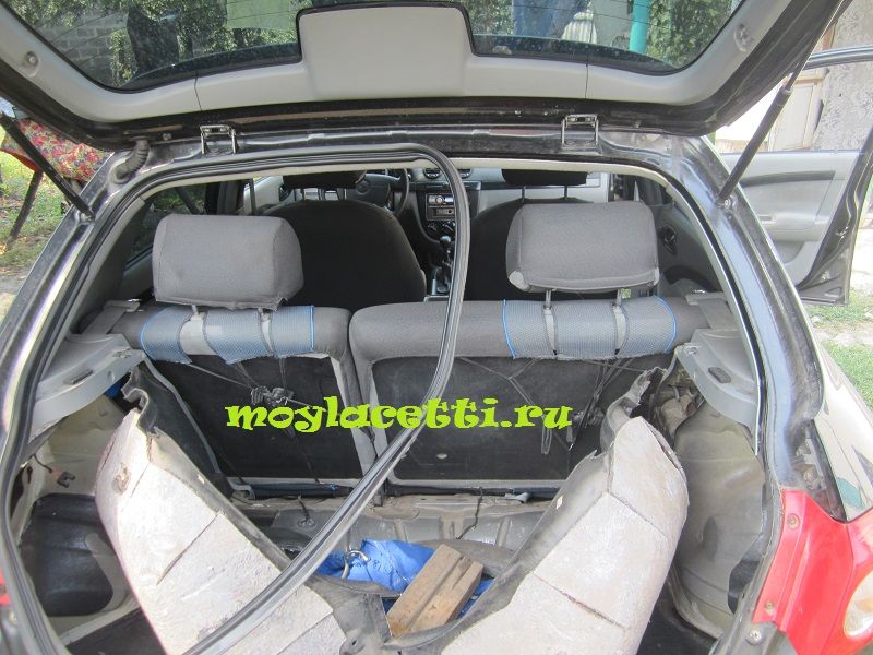 Для начала демонтажа бампера необходимо снять обивку багажника. Это делается быстро, а весь недолгий процесс изложен в статье Как снять обивку багажника Лачетти