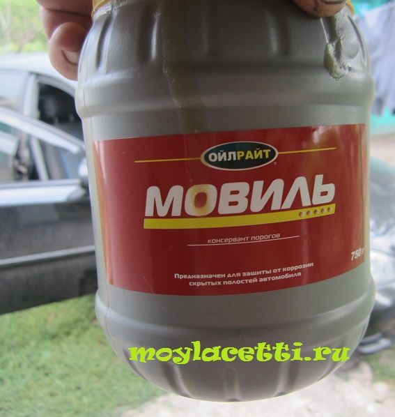 Я всё хорошо вымыл — и в багажнике, и в зоне бампера снаружи, и под крыльями. Пока всё просыхало, сходил в магазин и купил мовиль, а также преобразователь ржавчины.