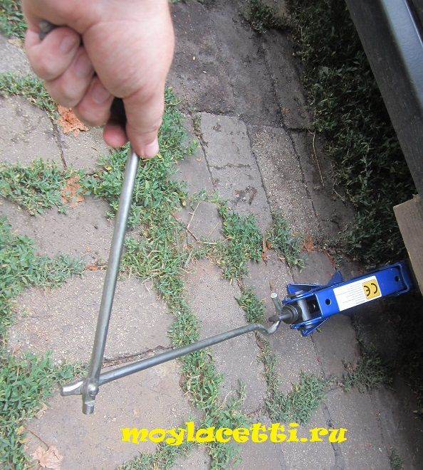К домкрату, кстати, идёт в комплекте ручка для подъёма и опускания