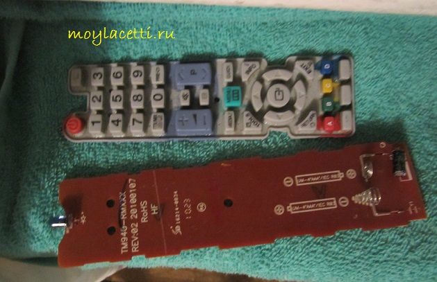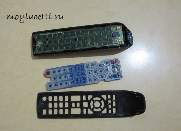 Первым делом части пульта необходимо вымыть. На фото вверху видно, что рабочая резина и плата загрязнены жирной и липкой субстанцией, которая во многих пультах становится причиной плохого контакта и, как следствие, нет возможности им полноценно пользоваться.