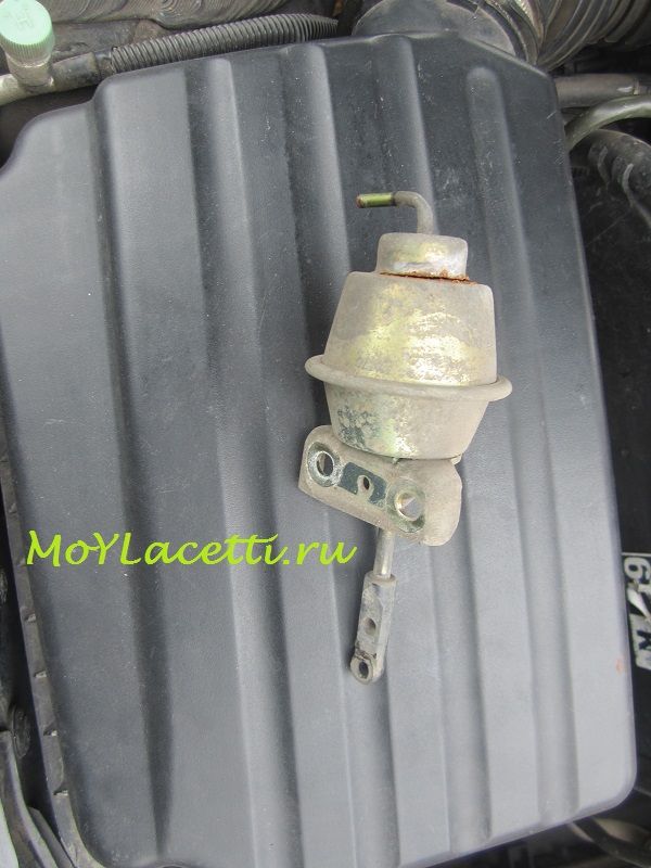 Диафрагма ещё кое-как работает. Шток на холостом ходу втягивается, но стоит немного нажать педаль газа, как шток немного выходит. Это происходит, потому что при открытии дроссельной заслонки в коллекторе кратковременно возрастает давление и уменьшается разрежение. И этого разрежения уже не хватает для удержания порванной диафрагмы. Хотя целую диафрагму оно удержало бы без проблем.