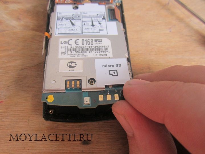 Проверяем, чтобы больше нигде ничего не держало и извлекаем плату телефона