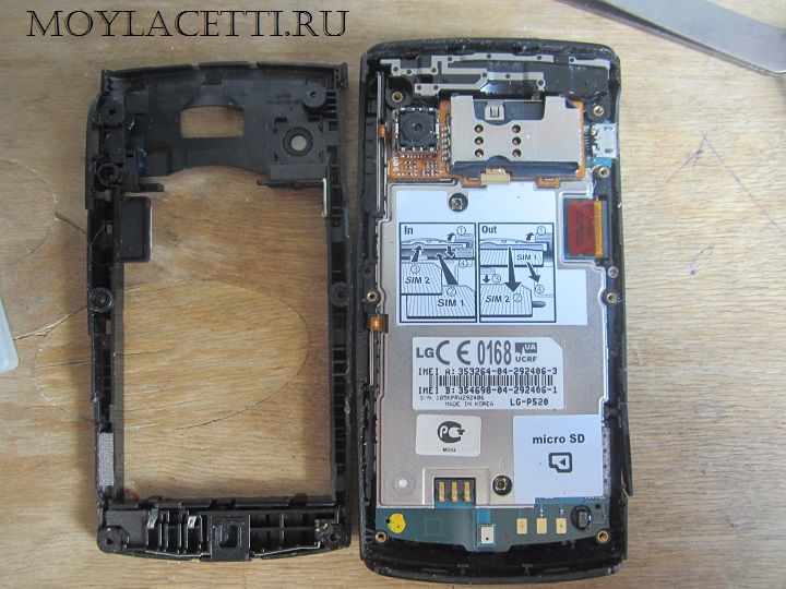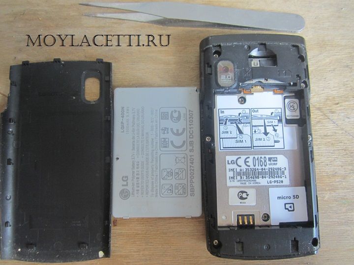 Снимаем заднюю крышку телефона и вынимаем аккумуляторную батарею. Можно сказать, пол дела сделали:)